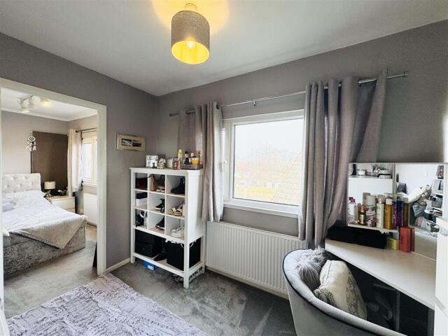 Bedroom Three - 3.67 apx x 2.83 apx (12'0 apx x 9'3 apx) - Located to the front of the property with a window over looking the front garden, this L-shaped bedroom is neutrally decorated and benefits from built in wardrobes to one wall. A door leads to the landing.