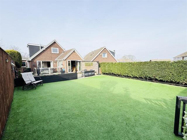 Rear Garden - To the rear of the property is a fabulous low maintenance garden which has a patio area suitable for a hot tub, a large artificial lawned area, and a further gated garden and patio area in front of the large garden building which is set up as a bar.