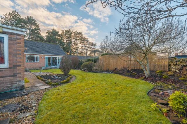 Externally, the property benefits from ample off-road parking to the front, complemented by a generous lawned garden. The rear features a mature wrap-around garden offering a high degree of privacy. A substantial double garage with adjoining utility room and side access to the garden provides further potential, subject to relevant consents, for conversion into a garden room or ancillary accommodation.