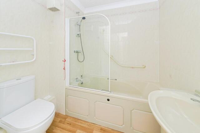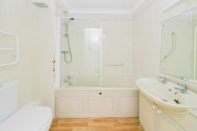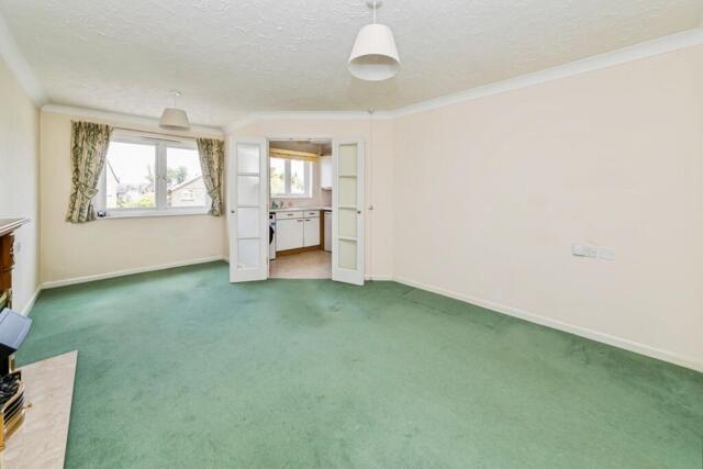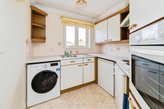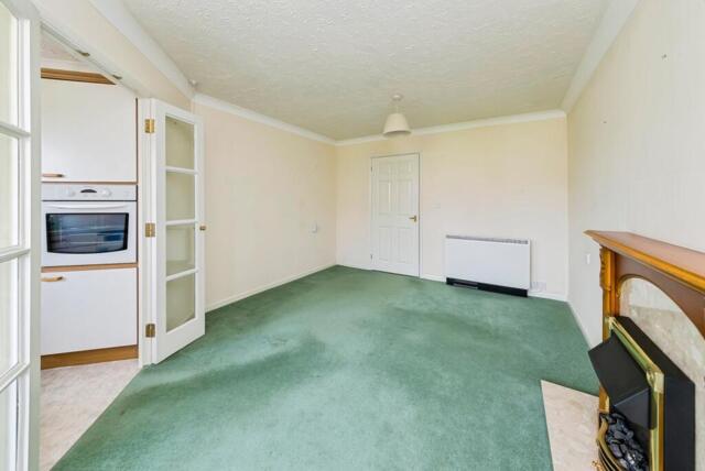 This property allows for comfortable living, as you walk into the apartment, you are welcomed by an entrance hall with large 'walk-in' cupboard. To the right is a large bedroom measuring in excess of 19ft with a full wall of fitted mirrored wardrobes. Plenty of natural light floods the sitting/dining room with a cozy electrical fire to warm up the room on the colder nights. The well-sized kitchen is designed for accessibility with a waist height oven and also includes a hob, fridge, freezer and washing machine all included.