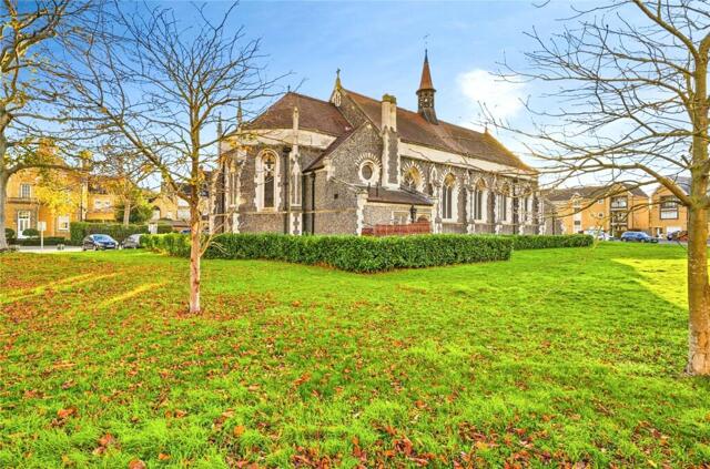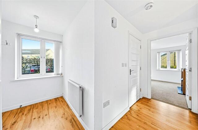 Upon entering, you’re welcomed by a bright and spacious hallway with generous built-in storage, providing access to every room. The open-plan living area and modern fitted kitchen create an inviting space for both relaxing and entertaining, with french doors leading onto a private balcony offering charming views towards the Chapel.