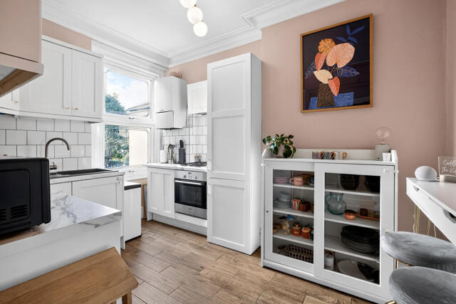 Immediately warm and inviting, this beautifully presented first-floor period conversion feels both elegant and full of character. Ideally positioned for excellent underground and overground connections, it also enjoys Muswell Hill and Alexandra Park on the doorstep. High ceilings, original fireplaces, fitted blinds throughout, and stylish panelled walls in the reception room combine to create a home that balances period charm with modern comfort.