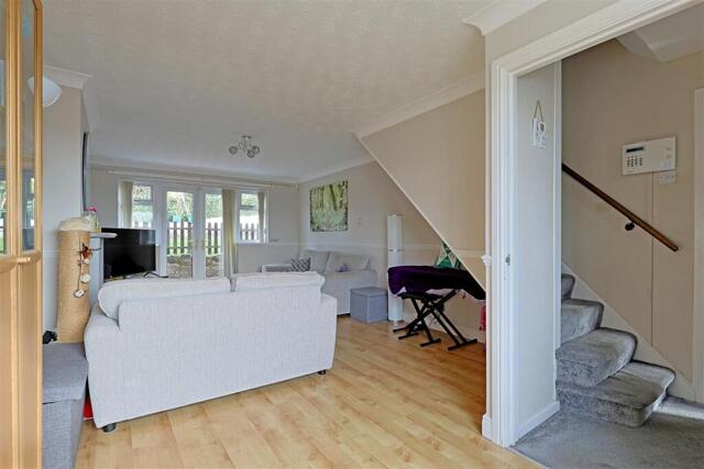 Reception Room - 6.86m x 3.66m (22'6 x 12'0) - Generously proportioned family reception room with dual aspect windows which provide plenty of natural light. Feature fireplace with marble back and hearth and gas-fire (serviced 19/9/2025) Laminate flooring and French doors leading onto the rear gardens.