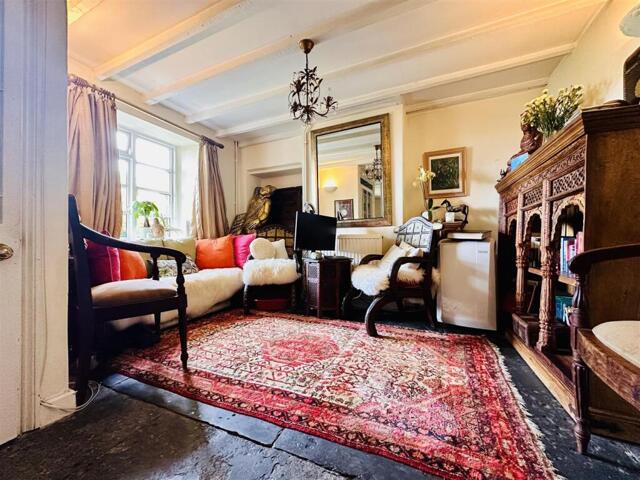 Living /Family Room/Dining Room - 6.12m x 3.63m (20'1 x 11'11) - A front aspect room with wooden double glazed window to the living room end and a wooden double glazed window to the dinning end. It is currently configured as one big living area although to the dining room end there is plenty of room for a dining table and chairs. The room has beautiful original flag stone flooring, two ceiling lights, original ceiling beams, two radiators, original cast iron open fire with Draycott Stone Hearth, There is a door to the hallway.