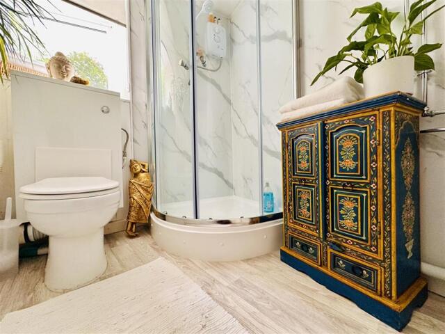 Shower Room - Recently completed, rear aspect UPVC double glazed window, ceiling light, extractor fan, radiator, wood effect vinyl flooring. There is a low level wc with hidden cistern, corner sink with a vanity cupboard and a step in shower cubicle housing an electric shower system.
