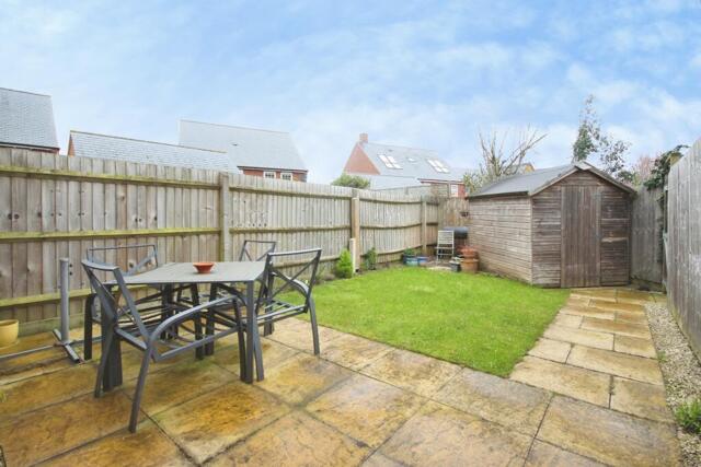 A private rear garden provides a pleasant outdoor space ideal for summer dining, children’s play, or light gardening.