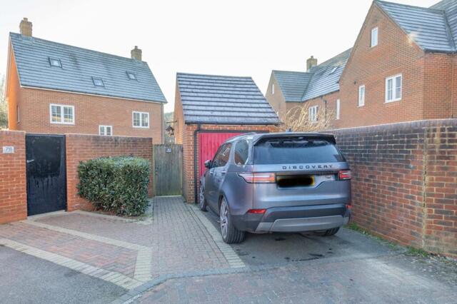 The property is approached via a private pathway to the front, beautifully framed by mature trees, creating a peaceful and welcoming first impression. To the rear, the home benefits from a separate garage and allocated parking, providing both convenience and practicality.