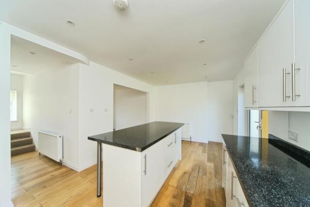 Hall into a triple aspect living room and a large kitchen breakfast room which has a central island with integrated appliances into the family or dining room all of which have wooden flooring.