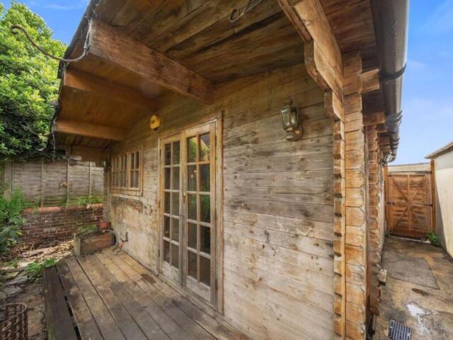 The rear garden offers a private outdoor retreat, while an impressive outbuilding with heating, power and light presents superb versatility as a studio, workshop or home office.