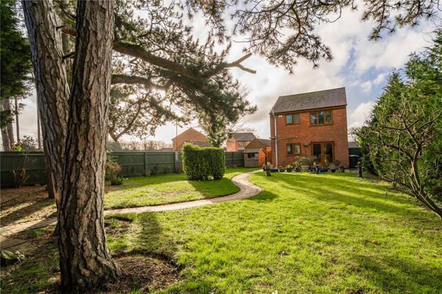 Externally, the property benefits from large gardens and excellent parking facilities. To the front is a block-paved driveway providing off-road parking, leading to a detached brick garage. The secure rear garden is predominantly laid to lawn and features a paved seating area, ideal for outdoor dining, along with mature trees that offer a pleasant outlook and a good degree of privacy.