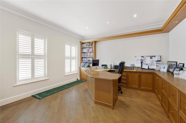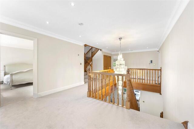 In addition, there is a spacious galleried entrance hall, fully fitted study, family room, formal drawing room and dining room, both leading into a superb conservatory offering great views of the golf course and private garden and a kitchen/breakfast room benefitting from integrated appliances. There is also on this level a laundry room and guest cloakroom.
