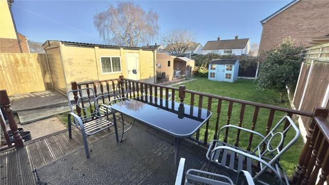 Externally, the property offers a driveway leading to a detached garage, a small lawned garden to the front, and to the rear a large lawned garden with a decking area, providing an excellent outdoor space for families and social gatherings.