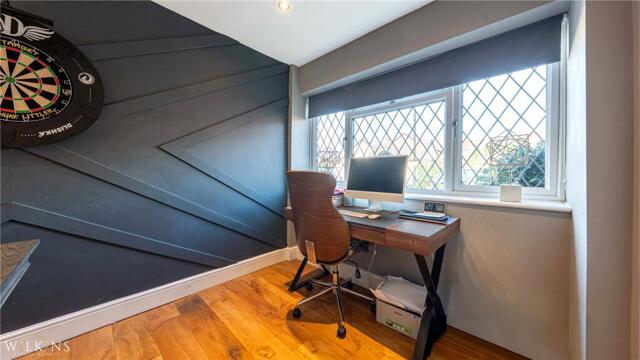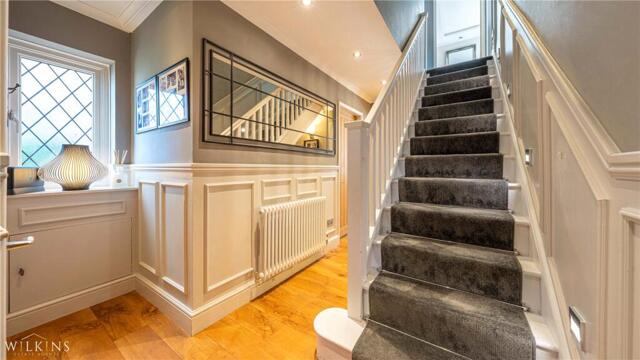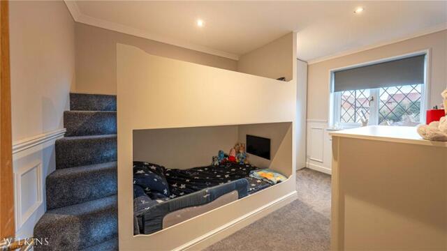Upstairs, the property continues to impress with four well proportioned bedrooms, including a stylish and modern master bedroom with a sleek en-suite shower room. A contemporary family bathroom serves the remaining bedrooms, offering comfort and practicality for busy family life. Further benefits include a fully boarded loft with pull down ladders, providing excellent additional storage space and potential for future use.