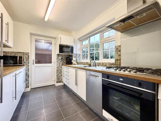 The kitchen is fully fitted with a matching range of wall and base units with countertops above. It benefits from an inset sink drainer, integrated dishwasher, integrated electric oven that is only a year old, integrated gas hob with stainless steel extractor hood over, brand new integrated fridge/freezer & space and plumbing for a washing machine. The kitchen also offers a useful under the stairs storage cupboard, door to the side elevation and window at the rear providing a lovely outlook over the garden.