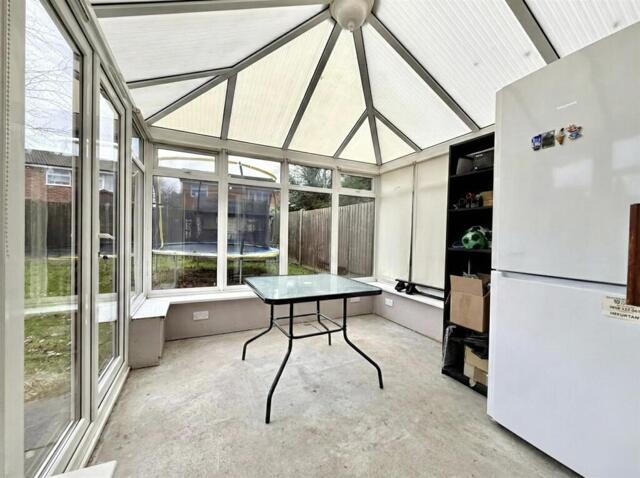 The conservatory is glazed to three elevations and has French doors providing access directly out the patio and garden beyond.