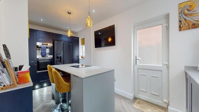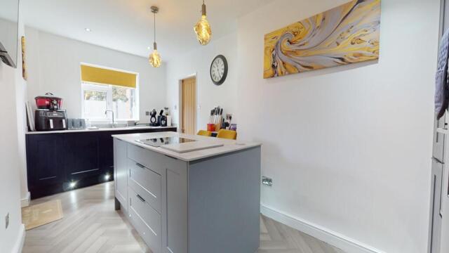 Upon entering, you are greeted by a thoughtfully designed interior that seamlessly blends style with functionality. The ground floor boasts an impressive open plan living and dining room, creating a bright and inviting space perfect for both relaxing and entertaining. This expansive area provides ample room for comfortable furnishings and offers a versatile layout to suit various needs. The heart of this home is undoubtedly the stunning kitchen, featuring a stylish breakfast bar island, contemporary fittings, and generous storage solutions. Additionally, the ground floor benefits from an additional reception room, offering superb flexibility. This space is perfect for a dedicated home office, a cosy snug, or a children's play area, catering to the demands of modern family living.