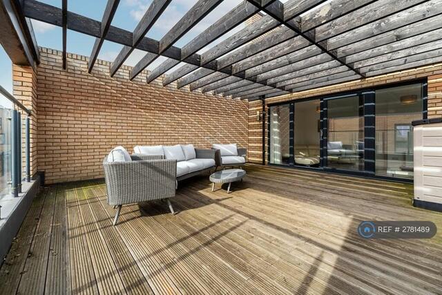 On the first floor there a spacious double room and single bedroom, large family bathroom with shower over bath, WC and wash basin. A generously sized family room/lounge which leads out to a large decked roof terrace with views over the quiet residential area.