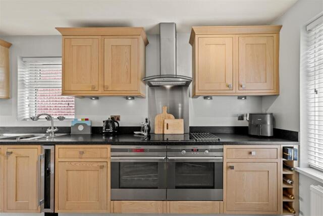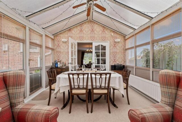 Inside, the property features a spacious kitchen diner complete with a breakfast bar and French doors opening directly onto the garden, creating a bright and social space perfect for entertaining or family meals. The kitchen has space for large fridge freezer and integrated appliances. The separate lounge flows into a conservatory at the rear, offering a peaceful view of the garden and a great additional living area.