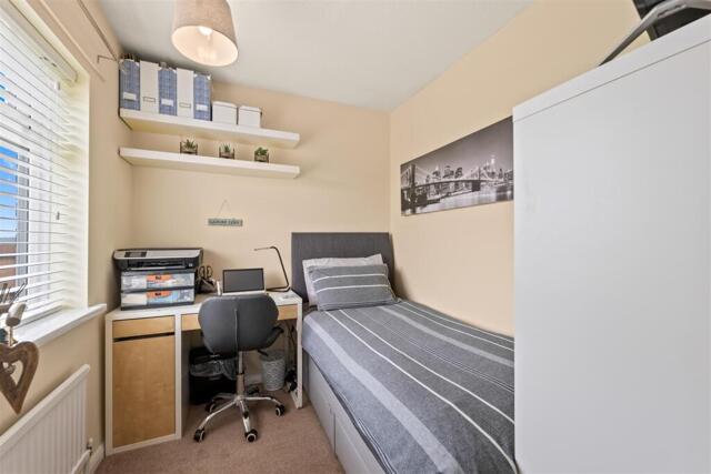 Upstairs, the master bedroom includes built-in wardrobes, while the fourth bedroom is currently used as a home office—ideal for remote work or study. Two further double bedrooms provide generous accommodation for family or guests, and the layout is designed to balance practicality with style. The bathroom has a 3 piece suite with a shower over the bath.