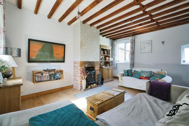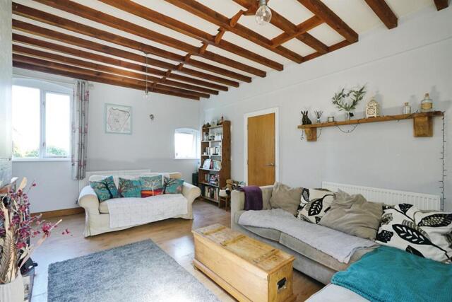 Having two double glazed windows to the front elevation giving beautiful aspect over the front garden and open countryside beyond, laminate flooring, feature fireplace incorporating cast iron log burning stove on a quarry tiled hearth with brick back and timber beam over, beams to the ceiling, double glazed window to the rear, two central heating radiators.