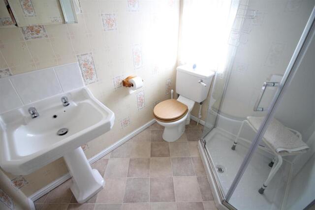Shower Room - Fitted with three piece suite comprising shower enclosure with electric shower, pedestal wash hand basin, and low-level WC. Extractor fan, double-glazed window to side, radiator.
