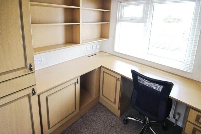 The home features two generously sized double bedrooms. The master bedroom benefits from built-in wardrobes and a private en-suite bathroom, creating a welcoming retreat. The second bedroom also offers ample space, ideal for guests, also fitted with wardrobes and matching drawers. In addition to the sleeping quarters, there is a very useful and versatile study - which has fitted storage units and bookcases. As well as the en-suite bathroom, there is a well-appointed modern shower room.