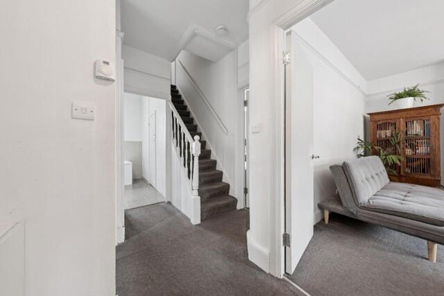 The layout includes three double bedrooms, two bathrooms (plus a separate W/C), a fully equipped modern kitchen, and a generously sized reception with space for dining. The second floor also features a utility cupboard and ample eaves storage. The property is in immaculate condition and boasts built-in storage solutions in nearly every room. With a share of the freehold and an underlying lease exceeding 900 years, this apartment represents a sound investment.